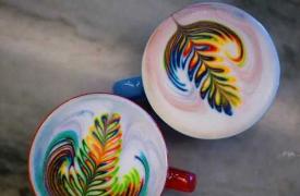 绚丽多彩:美咖啡师做彩色拉花拿铁受追捧