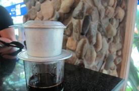 在海口颇具南洋风情的骑楼老街,有一家充满越南风味的悦来老街坊小吃店。上午十点半,馥郁的咖啡香在小店的空气中氤氲,咖啡壶里升起腾腾
