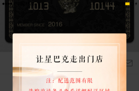 去年12月,环球黑卡星巴克咖啡配送特权上线,对于那些没有时间走进星巴克或者附近没有星巴克门店的持卡人来说,喝上一杯星巴克咖啡变得非