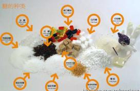 白砂糖 又称为蔗糖,为粒状晶体,是糖艺制作的基础原料。砂糖根据晶体的大小,有粗砂、中砂、细砂三种,